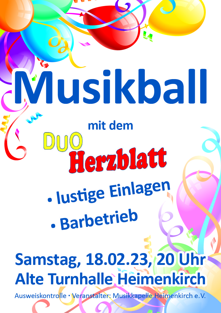 Am 18. Februar findet unser traditioneller Musikball statt. Wir freuen uns auf euch!